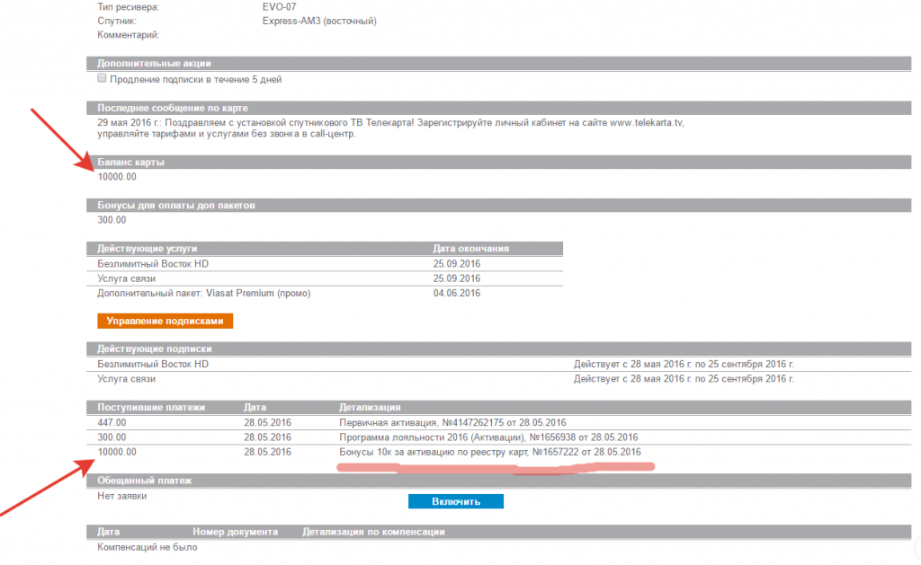 PS_Вот так выглядит страница в личном кабинете абонента «Телекарта», после подключения по Акции